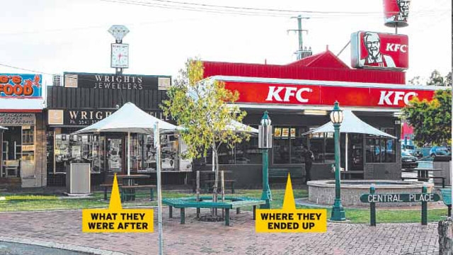 賊 人今次決定在商戶後方的公廁內,用鐵枝在牆壁上挖出一條隧道匍匐前行,滿以為今次可以通往珠寶店,誰料出來卻發現身處珠寶店旁的肯德基快餐 店。失敗數回的 賊人唯有將計就計,行劫快餐店,他們用鐵枝指嚇一名女店員,並從夾萬搶去2600澳元(約2.1萬港元)後逃去,警方接報後未幾追蹤至兩人家 中將他們拘 捕。兩人將被控搶劫及盜竊等罪名。